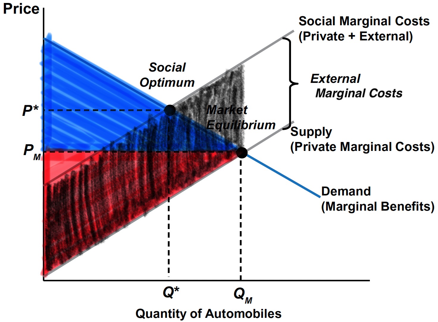 PMB < SMB ⇒ \(Q_{M}\) < \(Q^{*}\) → welfare loss.