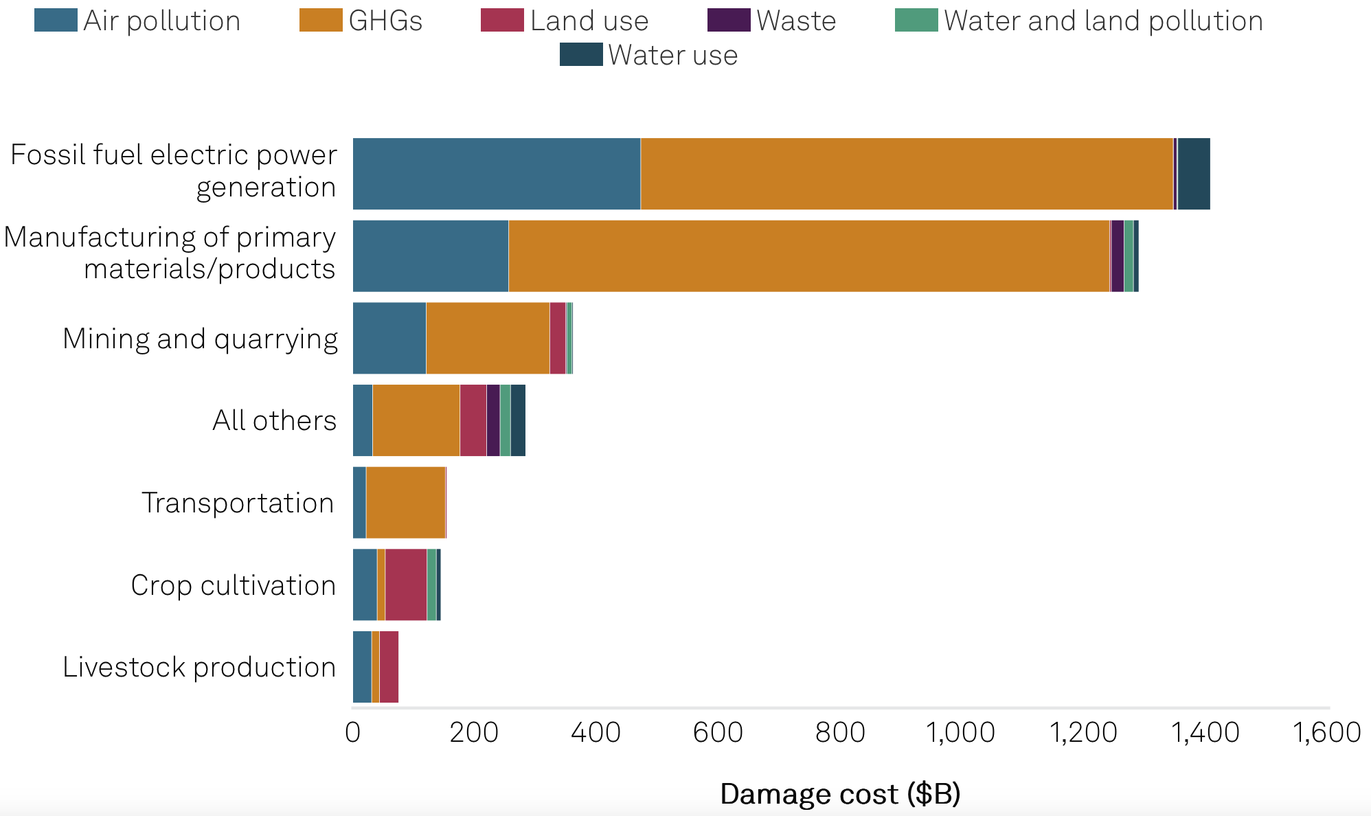 Environmental damage costs generated by companies in the S&P Global Broad Market Index by sector group in 2021.